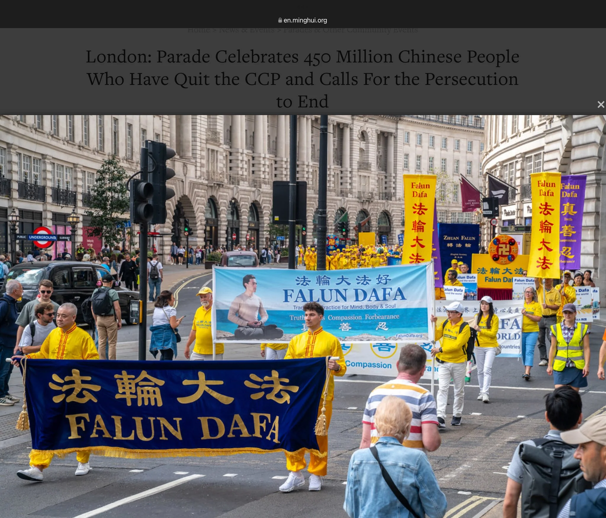 On August 23rd, 2025 I joined a peaceful Falun Dafa parade in London to raise awareness about this beautiful, ancient spiritual practice and to call for help to end the 26-year long brutal persecution by the Chinese Communist Party (CCP).