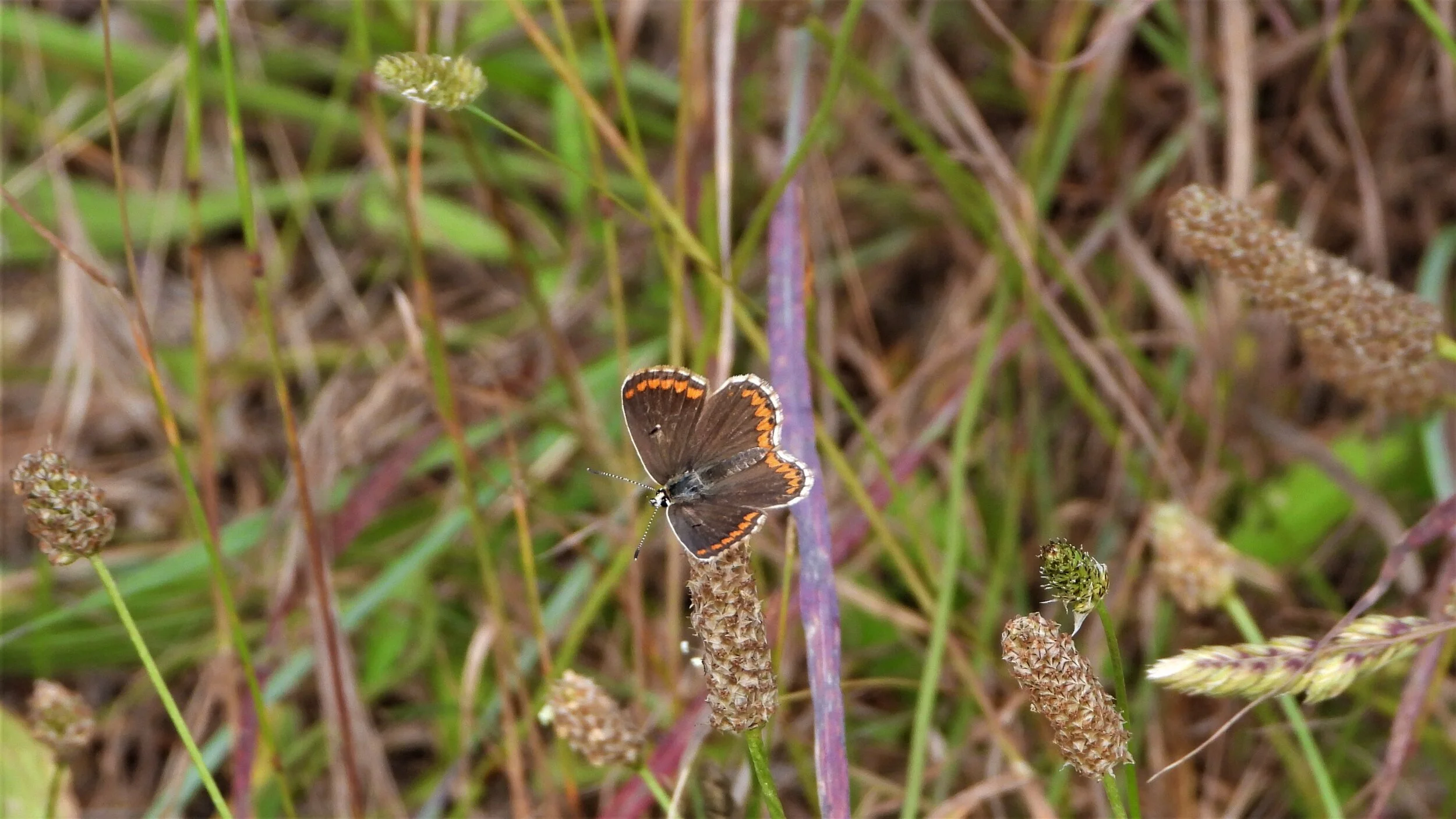 Side view of the same small Aricia butterfly at Parc de les Bateries